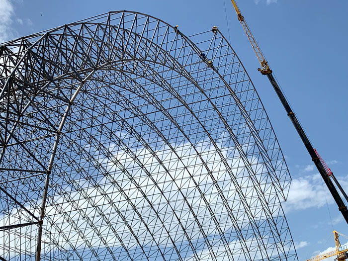 (2)网架加工前应对现场尺寸进行复测,确认无误后方可进行加工、安装;网架制作、运输、安装应遵守《空间网格结构技术规程》JGJ7-2010、《钢网架丹江口螺栓球节点》JG/T 10-2009、《钢网架丹江口螺栓球节点用高强度螺栓》 GB/T 16939-2016、《丹江口钢结构丹江口工程丹江口施工规范》 GB50755-2012、《丹江口钢结构丹江口工程施工质量验收标准》 GB50205-2020。